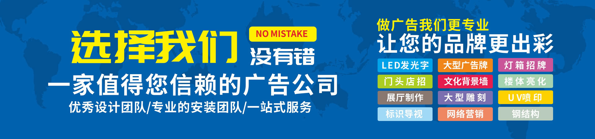 歡迎光臨上海廣告公司綜合服務(wù)網(wǎng)站,及廣告策劃、廣告設(shè)計(jì)、廣告制作、廣告安裝、工程維護(hù)一站式服務(wù)!